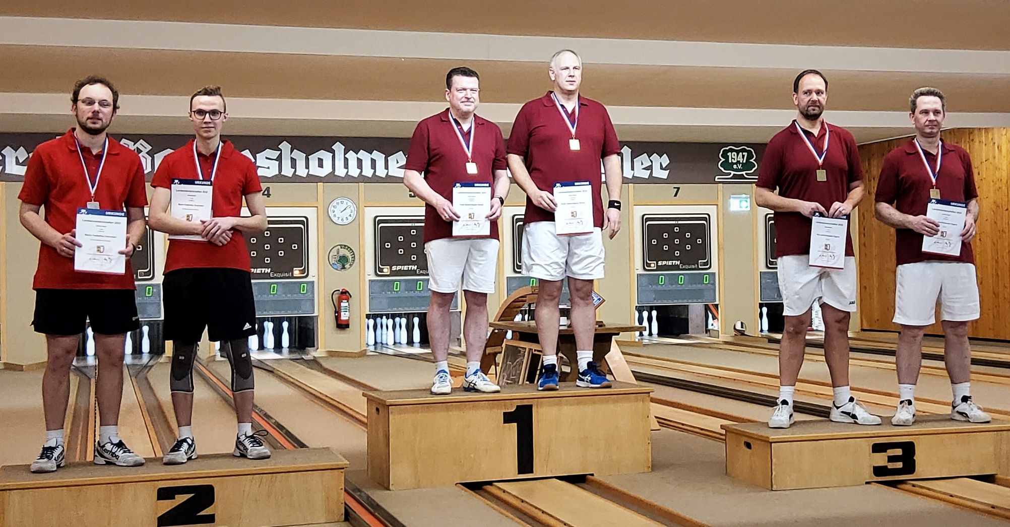Insgesamt 33 Herren-Paare traten in Bordesholm in den Kampf um Medaillen und Startrechte ein. Neue Landesmeister wurden die Kieler Sportkameraden Sascha Brinks und Frank Gerken. Drei Holz dahinter gewannen Martin Fedde/Kay Graumann von der SG Bordesholm-Rendsburg die Silbermedaille, Dritte wurden Kai Ludorf und sein langjähriger Doppel-Partner Alexander Eggers. Weitere drei Startrechte ginge nach Oldenburg u...