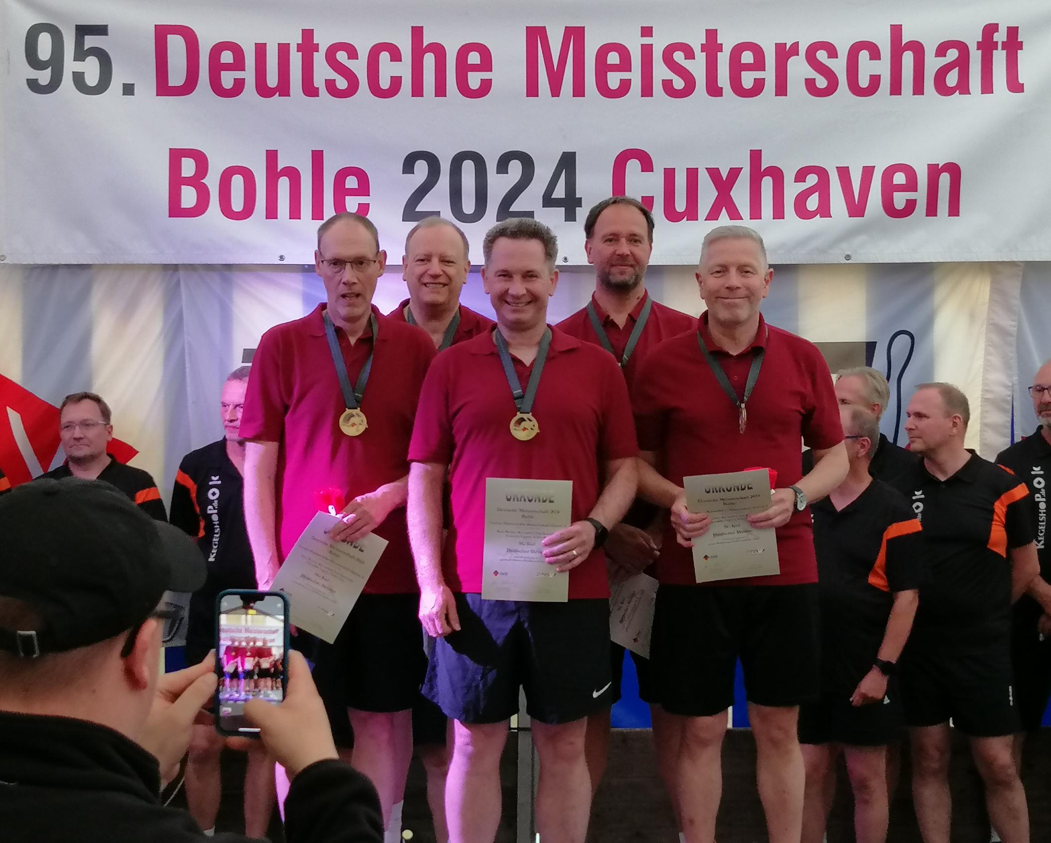 Am ersten Wochenende der DM Bohle 2024 gelingt der ersten Herren A-Mannschaft der SG Kiel die souveräne Titelverteidigung. Spannung in diesem Wettbewerb ist aber am Freitagnachmittag tatsächlich nur in der ersten Tour geboten, in der sich Kiels Anstarter Kai Ludorf (909) noch knapp Jens Kohlenberg aus Bremerhaven (910) geschlagen geben muss. In der Folg...