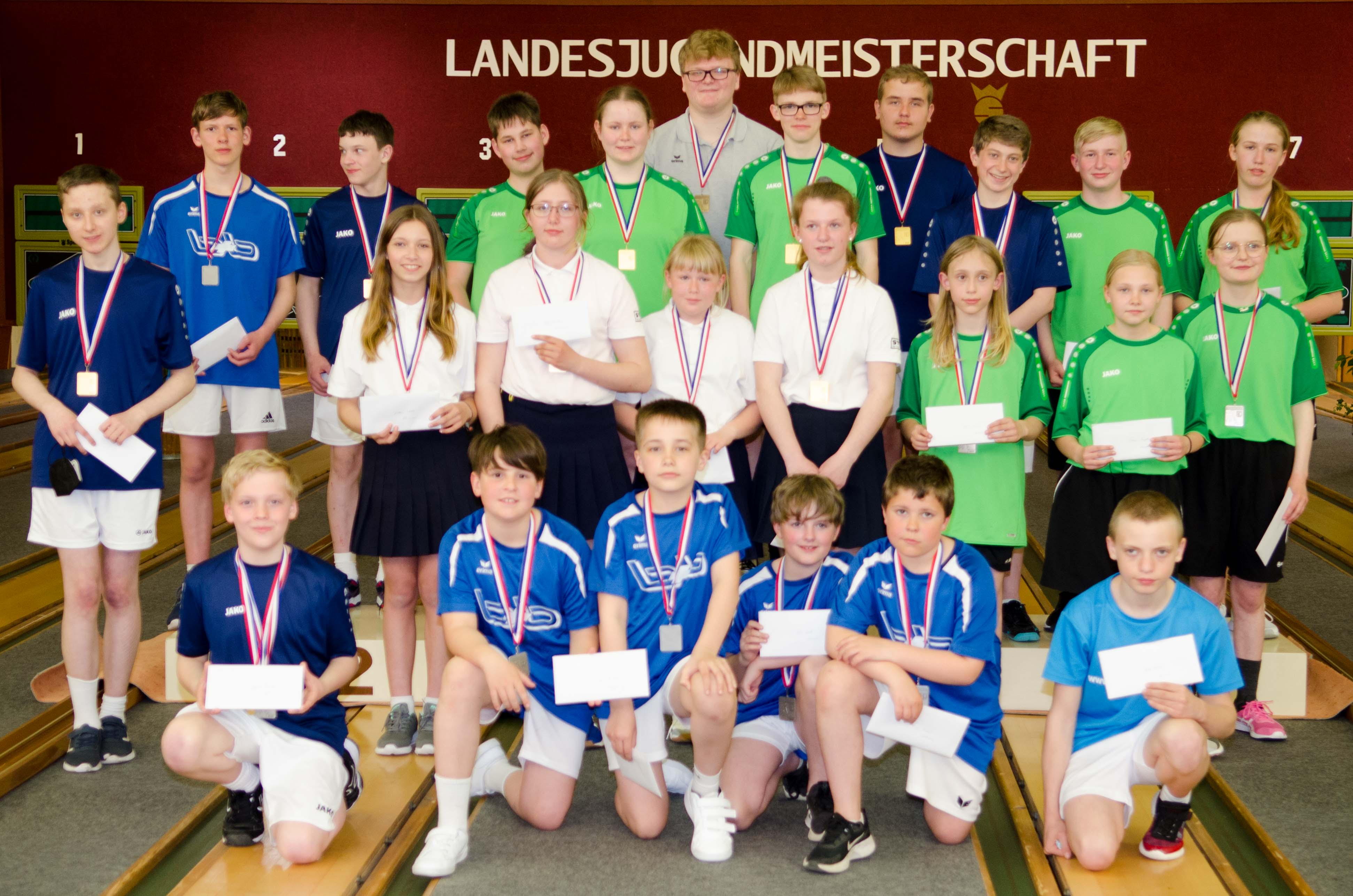 Die Landesjugendmeisterschaft war ein toller Erfolg!  Drei Jahre nach zahlreichen pandemiebedingten Einschränkungen trafen sich die Jugendlichen erstmals wieder zu ihren Titelkämpfen. In der VHK-Kegelsporthalle in Husum konnten Landesjugendwart Thomas Groß und seine Mitstreiter vom Jugendvorstand "alte Bekannte" und überraschend viele neue Gesichter begrüßen. Das macht Hoffnung, das "zarte Pflänzchen" Kegeljugend könne wieder aufblühen. Wenngleich die Ergebnisse hier und da noch Verbesserungspotenzial aufweisen, dürften alle Teilnehmenden – ab aktiv oder als Schlachtenbummler - Spaß am Erlebnis Kegelsport gehabt haben.