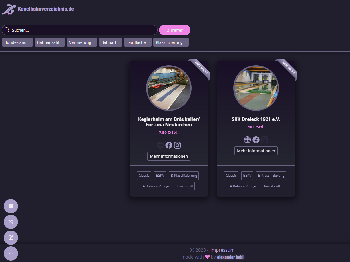Das Ganze funktioniert für Schere-, Bohle- und Classic-Kegelbahnen bundesweit, so dass Interessierte es leichter haben, Kegelbahnen sogar inkl. Google-Maps-Funktion zu finden.