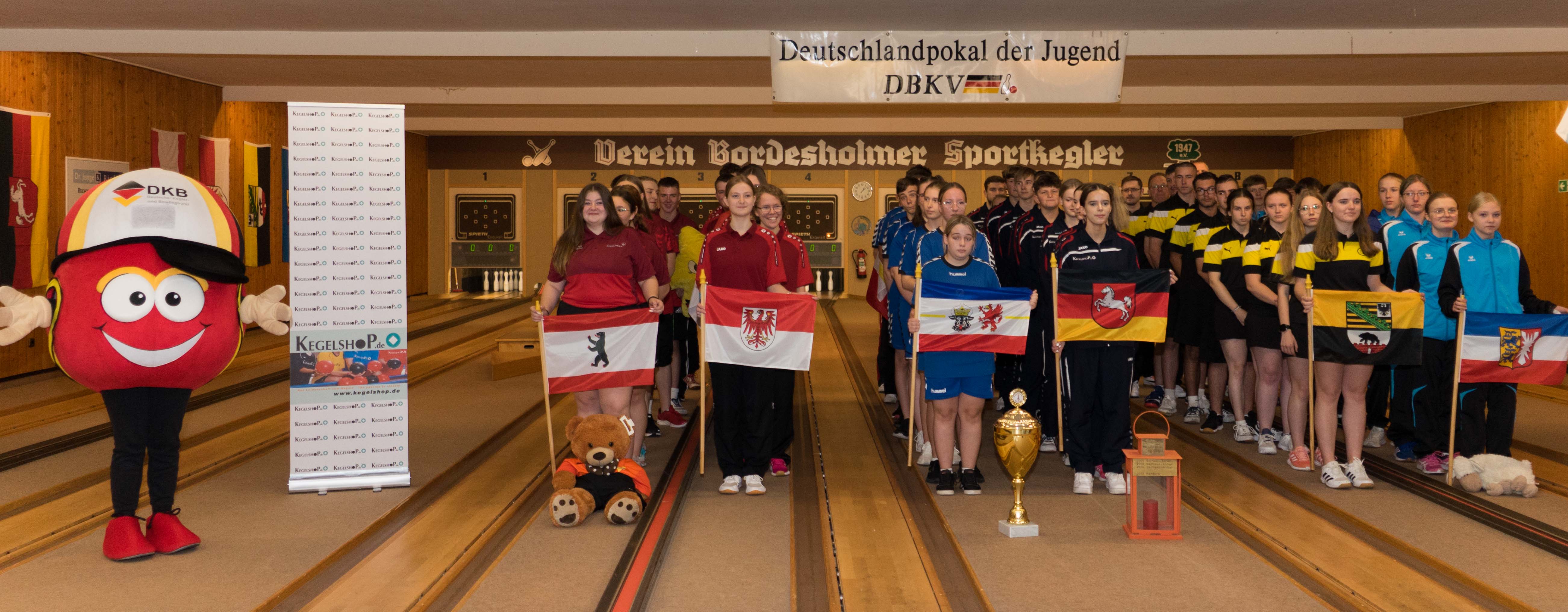 Am Wochenende vom 28. und 29. Oktober 2023 durfte der Verein Bordesholmer Sportkegler von 1947 e.V. Ausrichter des diesjährigen Deutschlandpokals der U18 sein. Hierfür reisten die besten Spieler:innen aus den sechs Landesverbänden Berlin, Brandenburg, Niedersachsen, Mecklenburg-Vorpommern, Sachsen-Anhalt und Schleswig-Holstein an. Gegen 13:00 Uhr am Samstag fand nach dem Einlaufen von Kebowlino und den Landesverbänden die Eröffnung durch die 2. DBKV Jugendwartin Andrea Schultz statt, welche anschließend an den ersten Vorsitzenden des Vereins Tobias Reese übergab. Nachdem auch Bordesholms Bürgermeister Ronald Büssow Grußworte an alle Teilnehmenden überbracht hatte, trat schließlich Thomas Groß, stellvertretend für den SHKV, nach vorne. Anlässlich des 75-jährigen Jubiläums des SHKV lud Thomas zu einem weiteren Wettbewerb ein. Die einzelne teilnehmende Person, die es schafft, das Höchstholz an diesem Wochenende zu erspielen, bekommt ein kleines Präsent überreicht.