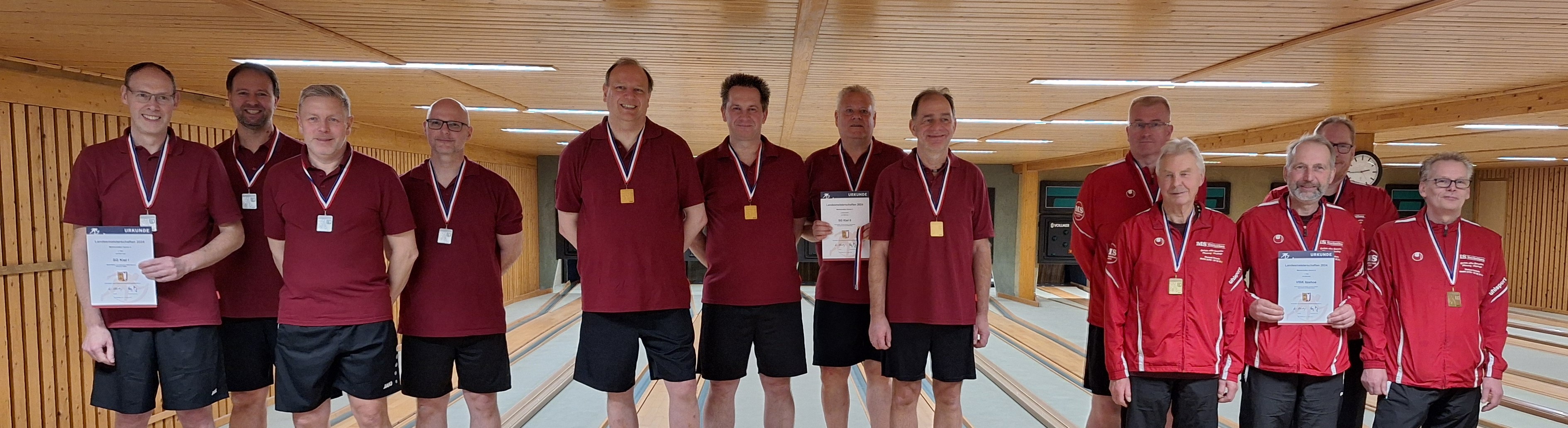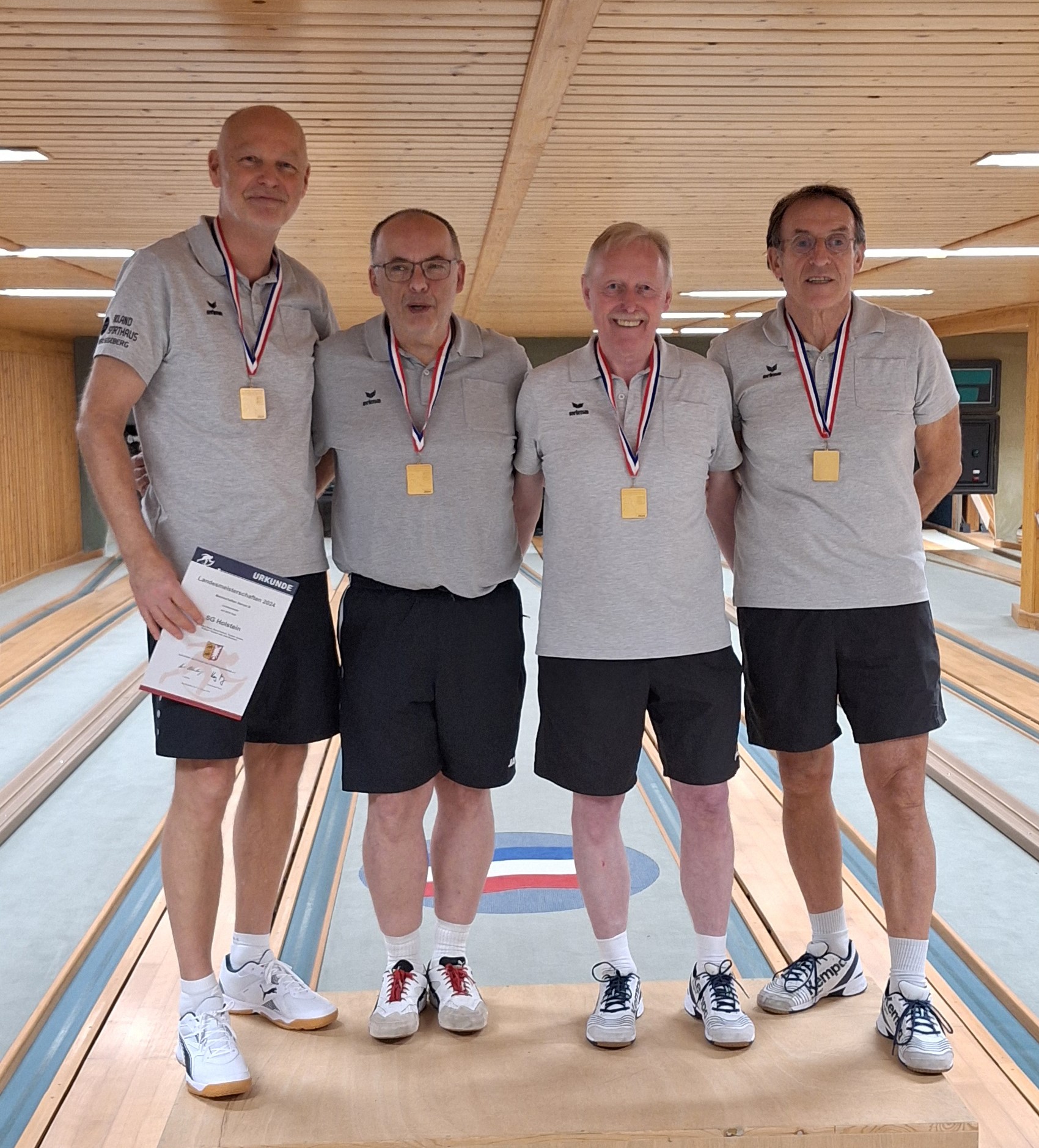 Auch bei den Herren A kommt die neue Landesmeister-Mannschaft aus Kiel. Hier überraschte die 2. Mannschaft mit Kai Ludorf (919 Holz), Frank Böttjer, Thomas Claußen, René Richter sowie Wechselspieler Frank Stöhrmann und schnappte der eigenen „Ersten“ den Titel mit einem Vorsprung von fünf Holz weg. Beide Teams qualifizierten sich zur DM, Dritte wurden die Herren A des VISK Itzehoe.